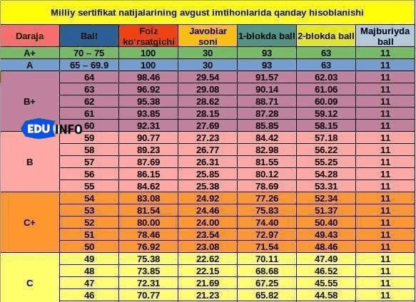 - 11 — majburiy fanlar uchun qo‘shiladigan ball